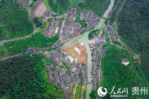 Photo shows an aerial view of Wujiang village in Zunyi city, southwest China's Guizhou Province. (People's Daily Online/Tu Min)