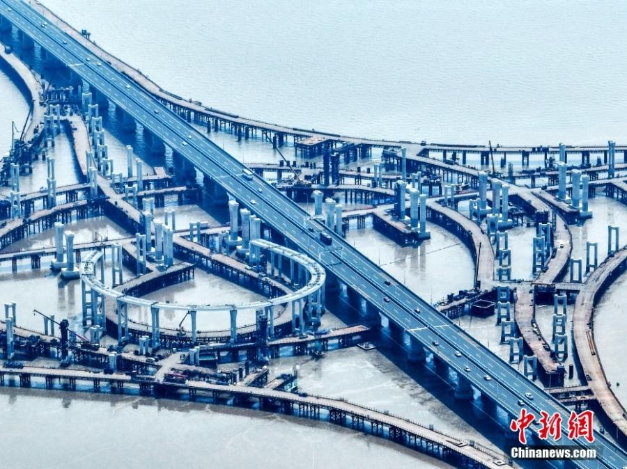 Photo shows the construction site of the Asia's largest maritime expressway interchange hub in Ningbo, east China's Zhejiang Province, July 17, 2022. (Photo provided to China News Service)