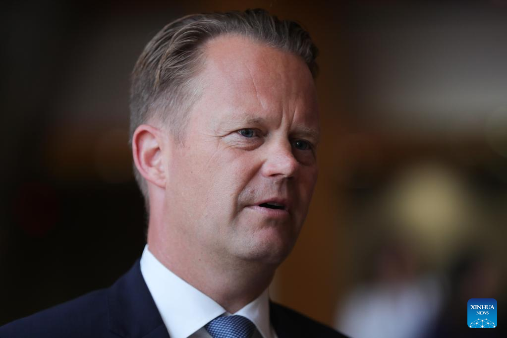 Danish Foreign Minister Jeppe Kofod speaks to the press before the meeting of the EU Foreign Affairs Council in Brussels, Belgium, July 18, 2022. (Xinhua/Zheng Huansong)