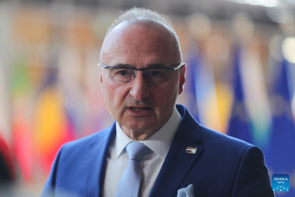 Croatian Foreign Minister Gordan Grlic Radman speaks to the press before the meeting of the EU Foreign Affairs Council in Brussels, Belgium, July 18, 2022. (Xinhua/Zheng Huansong)