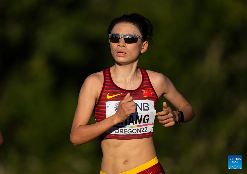 China's Zhang Deshun competes during the women's marathon final at the World Athletics Championships Oregon22 in Eugene, Oregon, the United States, July 18, 2022. (Xinhua/Wang Ying)