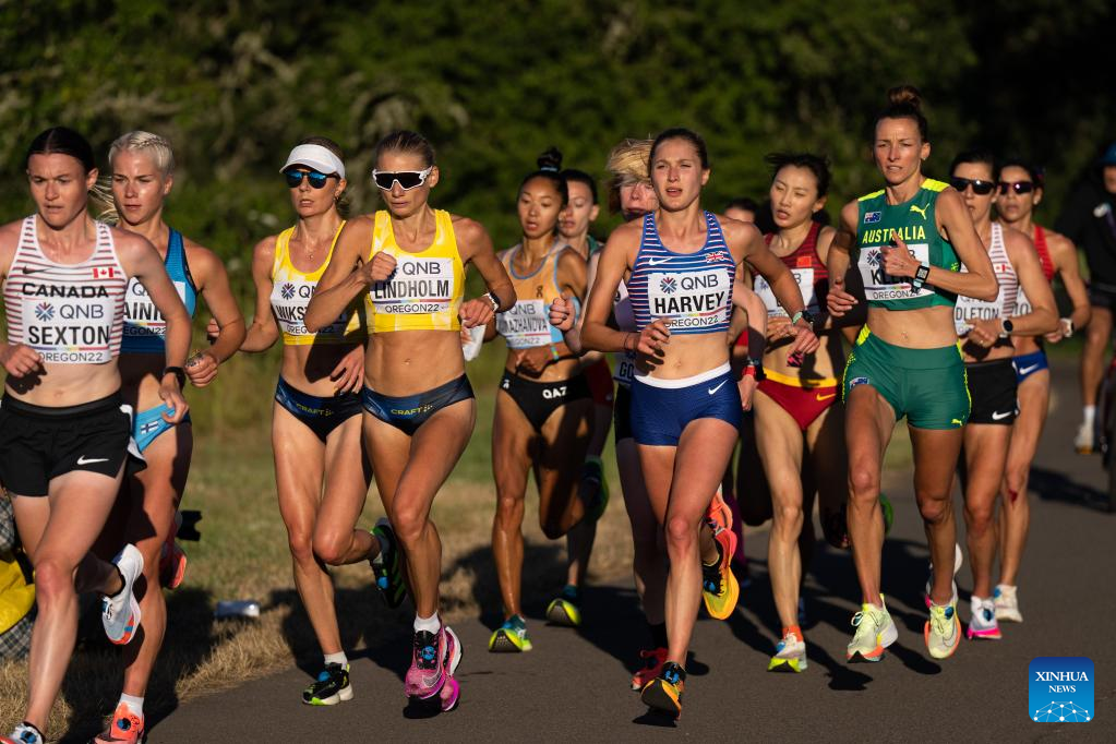 Runners compete during the women's marathon final at the World Athletics Championships Oregon22 in Eugene, Oregon, the United States, July 18, 2022. (Xinhua/Wang Ying)