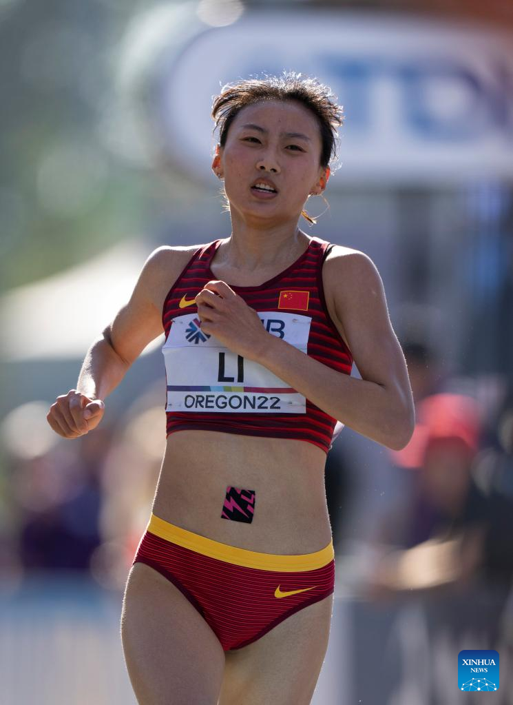 China's Li Zhixuan competes during the women's marathon final at the World Athletics Championships Oregon22 in Eugene, Oregon, the United States, July 18, 2022. (Xinhua/Wang Ying)