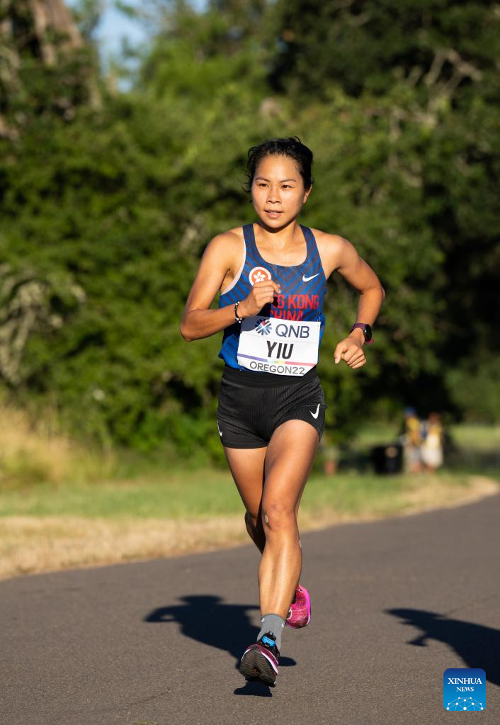 Yiu Kit Ching of China's Hong Kong competes during the women's marathon final at the World Athletics Championships Oregon22 in Eugene, Oregon, the United States, July 18, 2022. (Xinhua/Wang Ying)