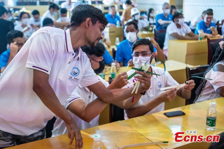 A group of 48 foreigners from 13 universities participated in a Bashu themed cultural activity to experience bamboo weaving, Sichuan cuisine cooking and Chinese sachet making in Sichuan from July 17-18, 2022. Bashu refers to an area that mainly covers today's Sichuan province and Chongqing municipality.