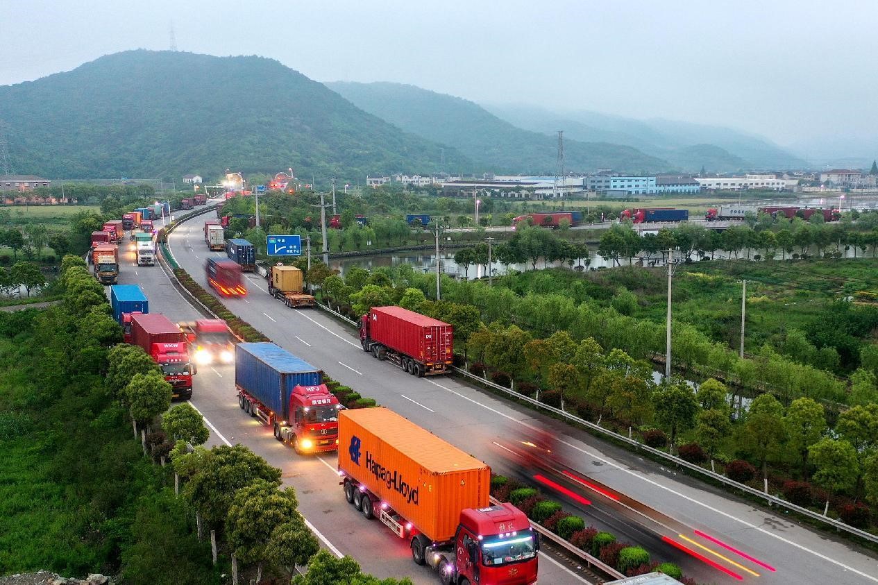 Container trucks enter and exit a container terminal at the port of Zhoushan, Ningbo, east China's Zhejiang province, April 27, 2022. (People's Daily Online/Yao Feng)