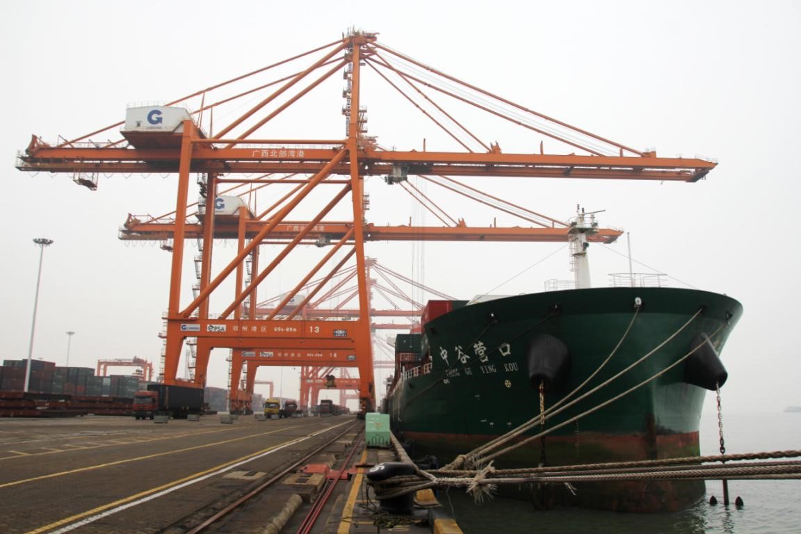 A vessel is docked at the port of Qinzhou, south China's Guangxi Zhuang autonomous region, March 25, 2021. The Qinzhou port section of China (Guangxi) Pilot Free Trade Zone has achieved remarkable progress in economic and social development thanks to the construction of the New International Land-Sea Trade Corridor. (People's Daily Online/Xu Xinghan)