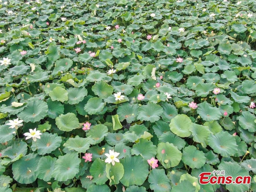 Lotus flowers are in full bloom at Yaoxi village, Guangchang county in east China's Jiangxi Province, July 19, 2022. (Photo: China News Service/Liu Lixin)