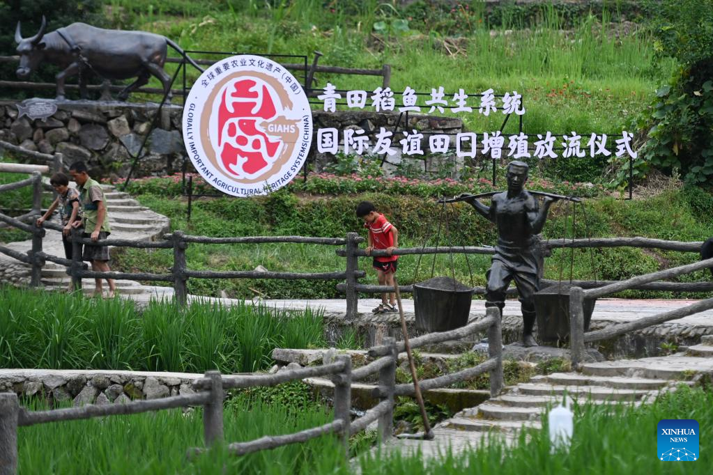 People visit a museum themed on Qingtian rice-fish co-culture system in Qingtian County, east China's Zhejiang Province, July 18, 2022.
