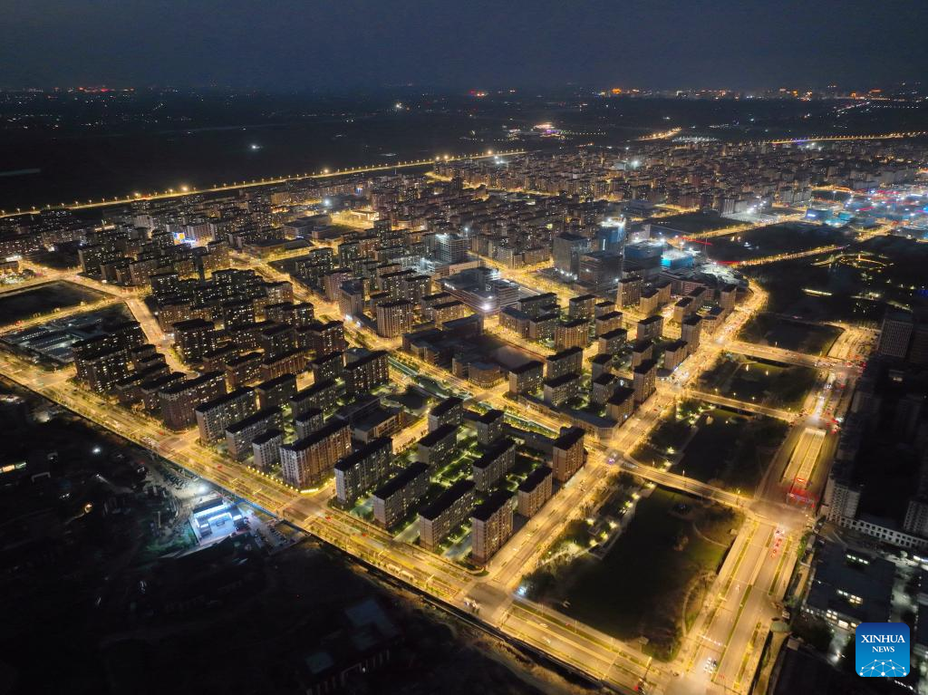 Aerial photo taken on July 20, 2022 shows a night view of Rongdong District in Xiong'an New Area, north China's Hebei Province. (Xinhua/Xing Guangli)