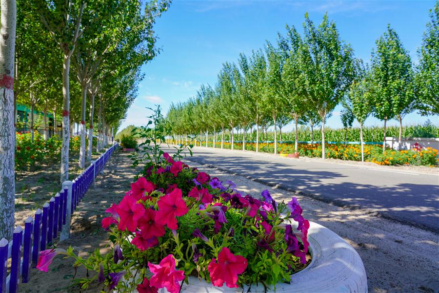 Photo taken on Aug. 12, 2020 shows a hardened road under an infrastructure reform in Chatai Village, Heiyupao Township, Zhenlai County, northeast China's Jilin Province. Once a national-level poverty-stricken county, Zhenlai County has shaken off poverty in 2019 after years of anti-poverty efforts. Now the county plans to upgrade its rural infrastructure and industrial structure with various supportive funds. (Xinhua/Zhang Nan)
