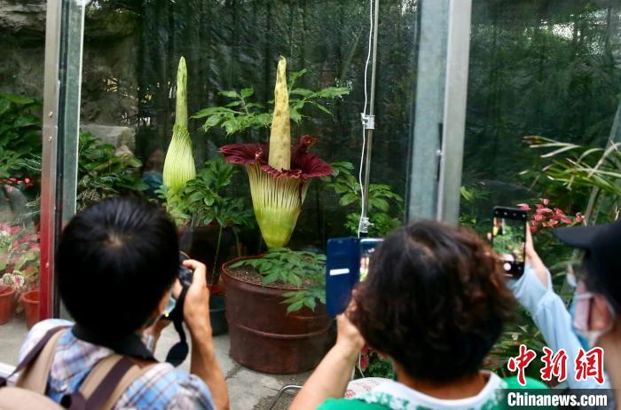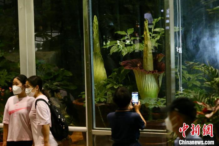 The giant Corpse Flower inflorescence exhibited this time is 1.68 meters high. The Corpse Flower only blooms for an average of 48 hours. A night event was held at the National Botanical Garden, where visitors can enjoy the rare blooming.