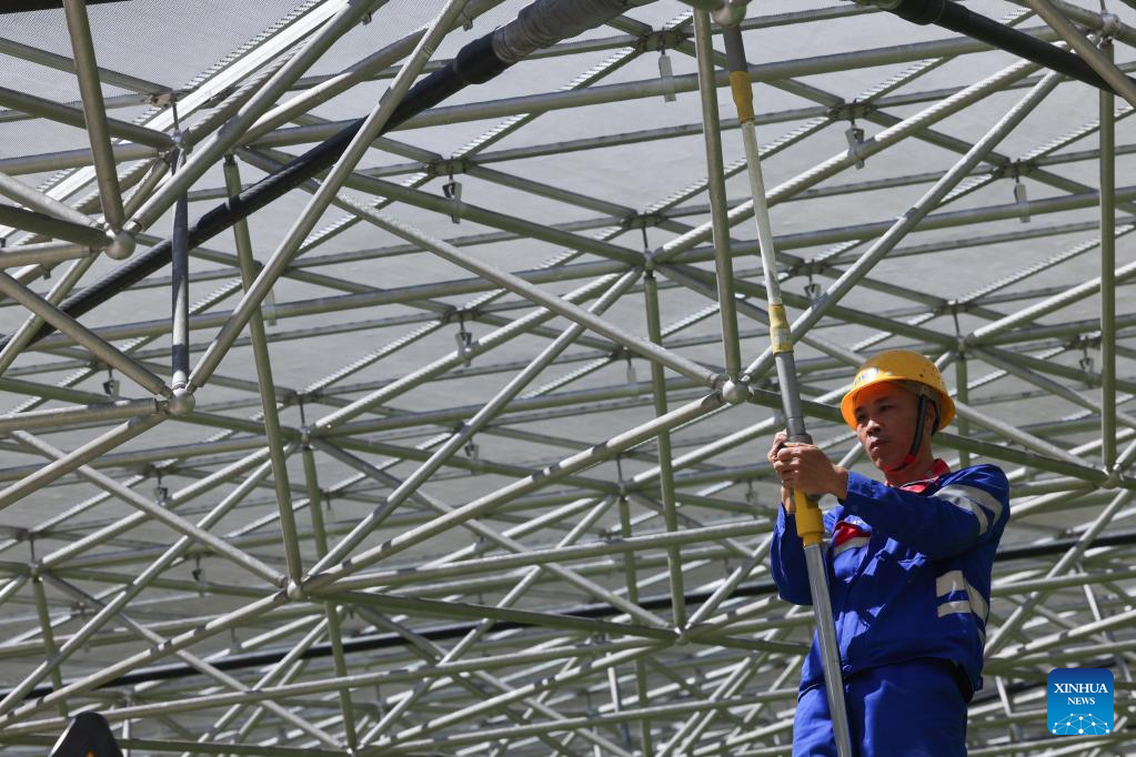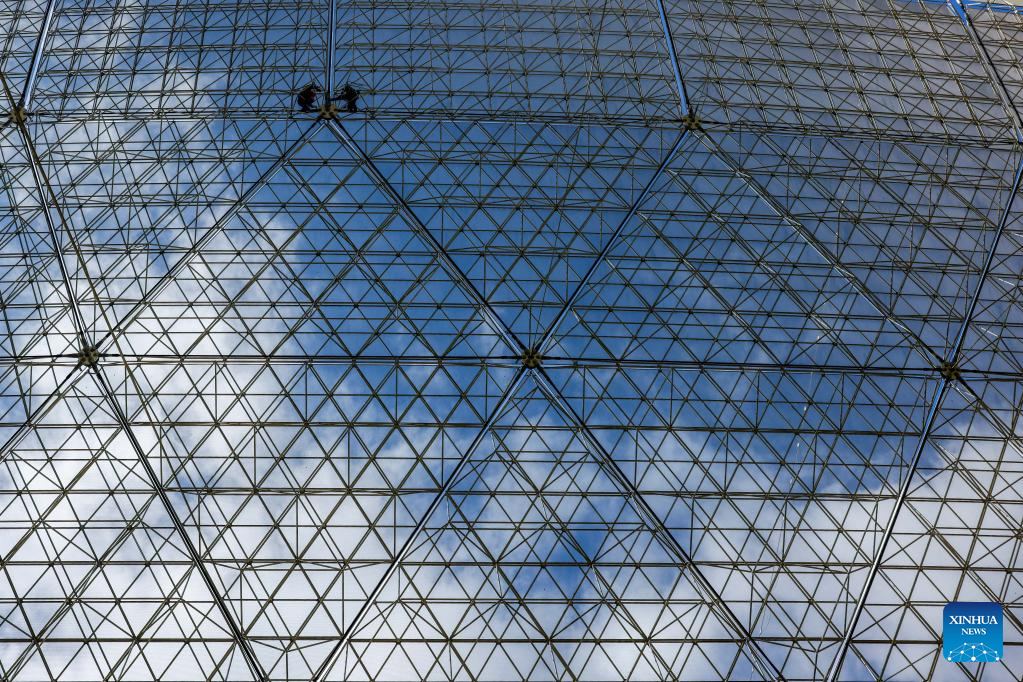 Photo taken on July 21, 2022 shows China's Five-hundred-meter Aperture Spherical Radio Telescope (FAST) under maintenance in southwest China's Guizhou Province. Using FAST, also dubbed as the "China Sky Eye," scientists have identified over 660 new pulsars since October 2017. (Xinhua/Ou Dongqu)