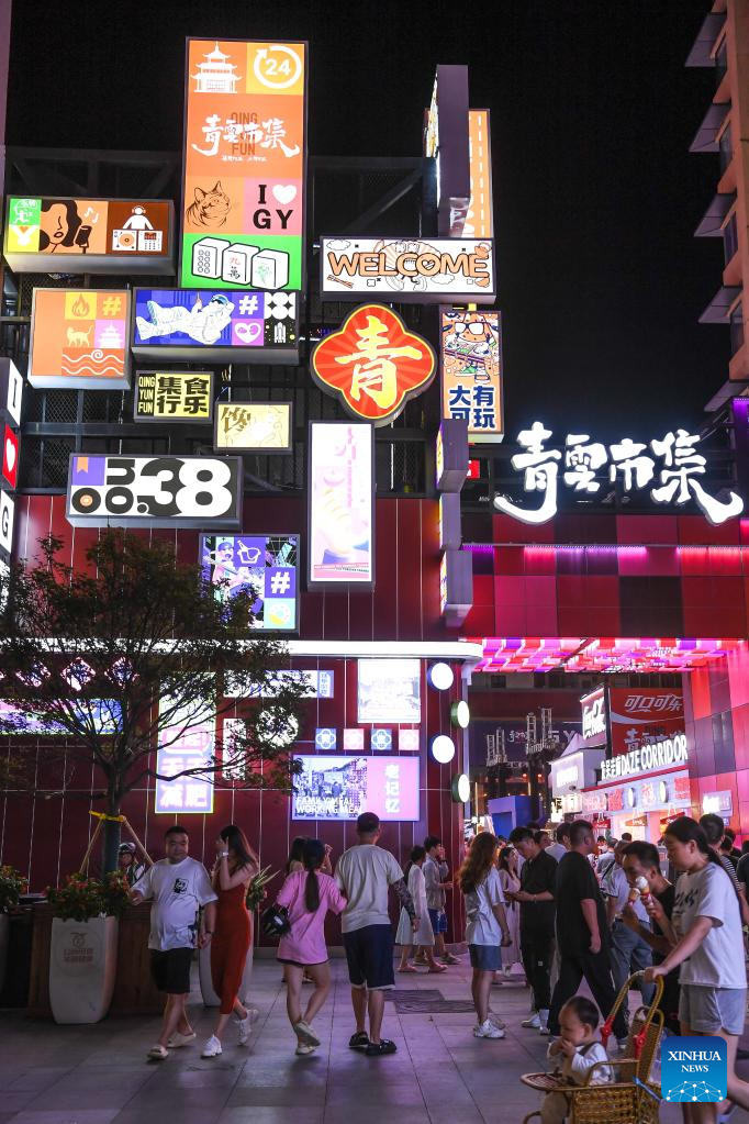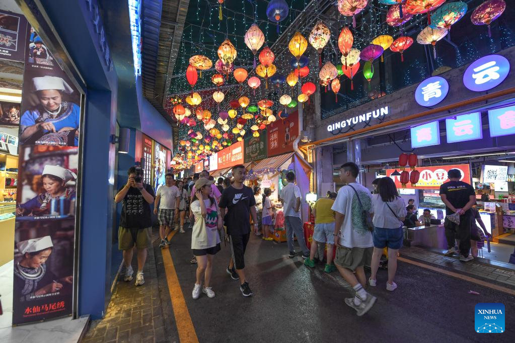 People tour a local market at the Qingyun Road in Nanming District of Guiyang, capital city of southwest China's Guizhou Province, July 21, 2022.