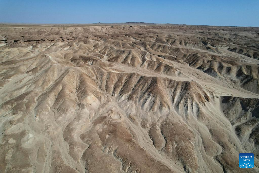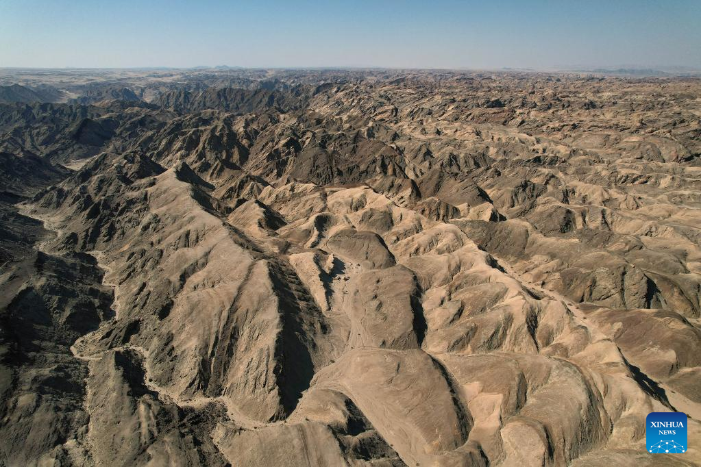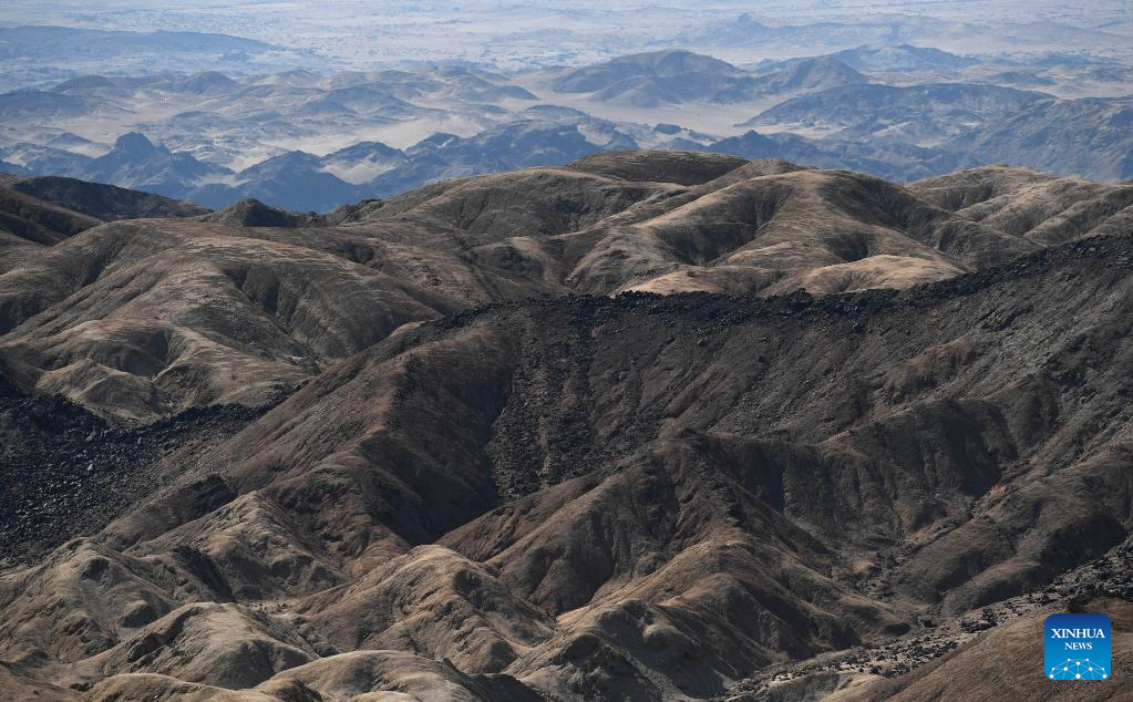 Aerial photo taken on July 22, 2022 shows the scenery of the Moon Landscape scenic area in Swakopmund, Namibia. (Xinhua/Chen Cheng)