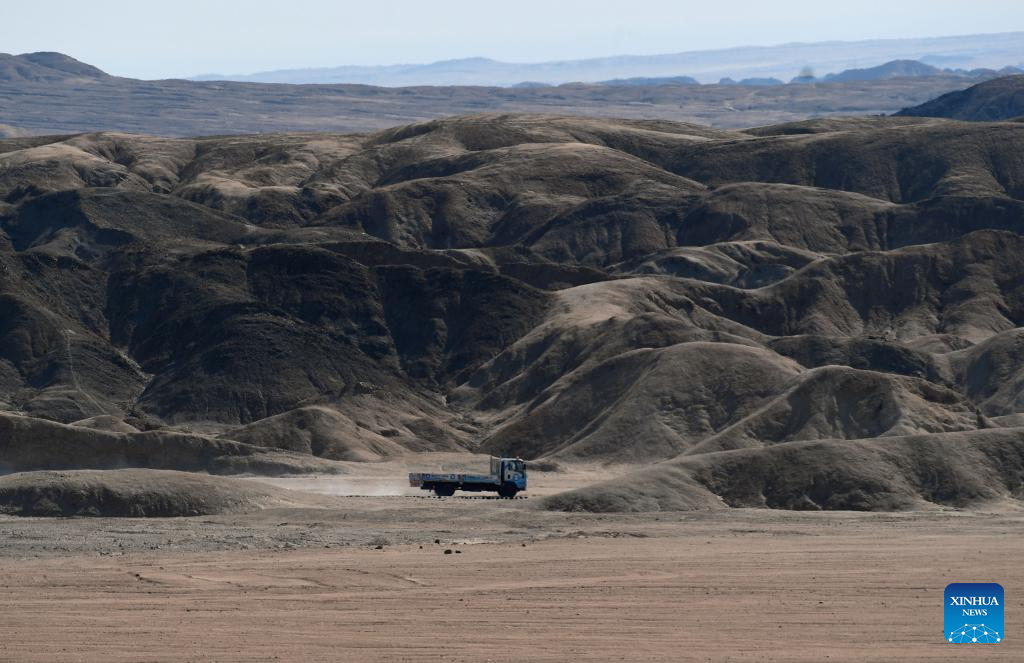 A truck drives in the Moon Landscape scenic area in Swakopmund, Namibia, July 22, 2022. (Xinhua/Chen Cheng)