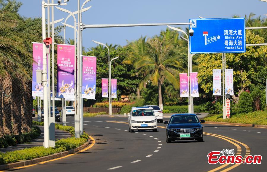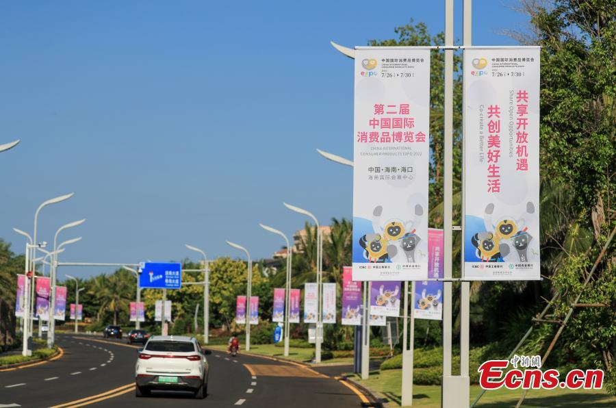 Posters hang on the street to welcome the 2nd China International Consumer Products Expo in Haikou, south China's Hainan Province, July 24, 2022. (Photo: China News Service/Jia Tianyong)