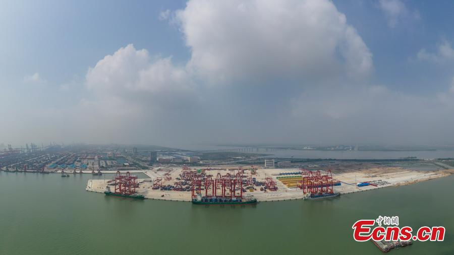 Aerial view shows the Nansha port, world first multimodal service port connects sea, river and railway transportation in Guangzhou, south China's Guangdong Province, July 28, 2022. (Photo: China News Service/Chen Jimin)
