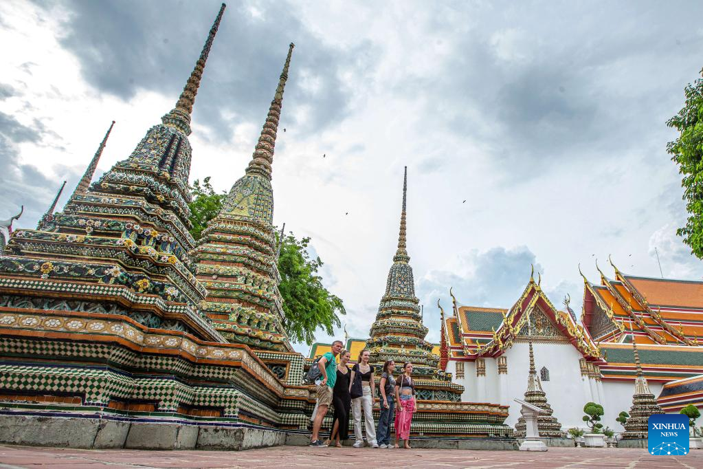 Tourists are seen at the Wat Pho temple in Bangkok, Thailand, on July 31, 2022. Thailand received more than 2 million foreign tourists in the first half of 2022. According to the forecast of the Ministry of Tourism and Sports, the number of tourists is expected to reach 9 million in this year. (Xinhua/Wang Teng)