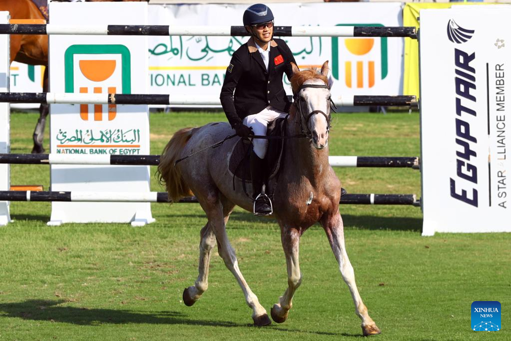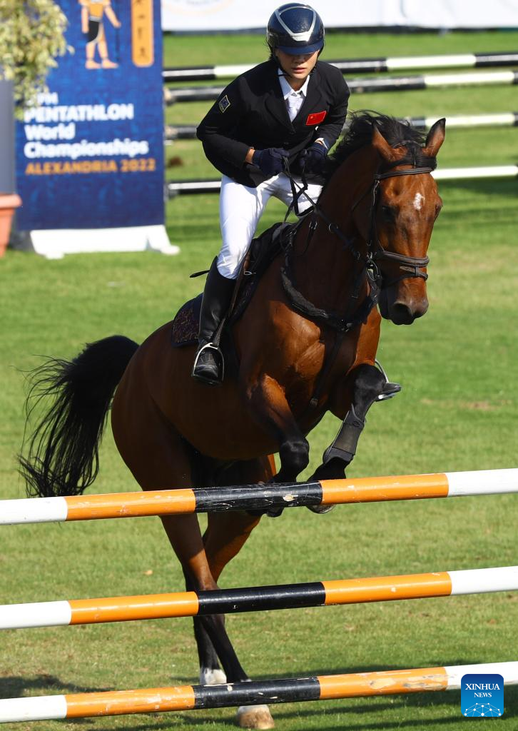 Xie Linzhi of China competes in the riding of the team-relay mix at the UIPM 2022 Pentathlon World Championships in Alexandria, Egypt, July 31, 2022. (Xinhua/Ahmed Gomaa)