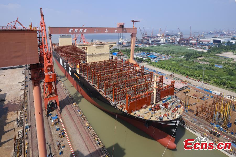 The world's largest container ship is successfully undocked in Shanghai, Aug. 1, 2022. (Photo: China News Service/Zhang Li)