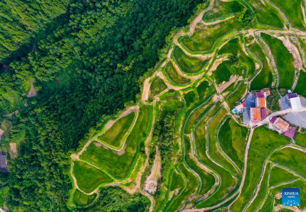 Aerial photo taken on Aug. 2, 2022 shows a view of Bayi Village in Wanzhou District of southwest China's Chongqing. (Xinhua/Wang Quanchao)