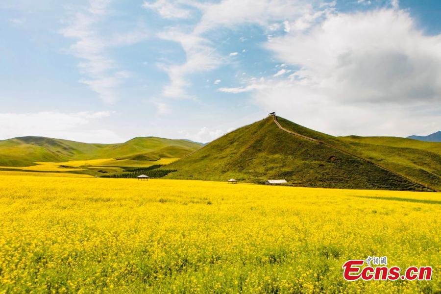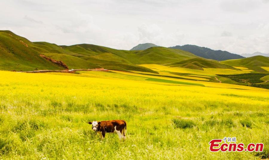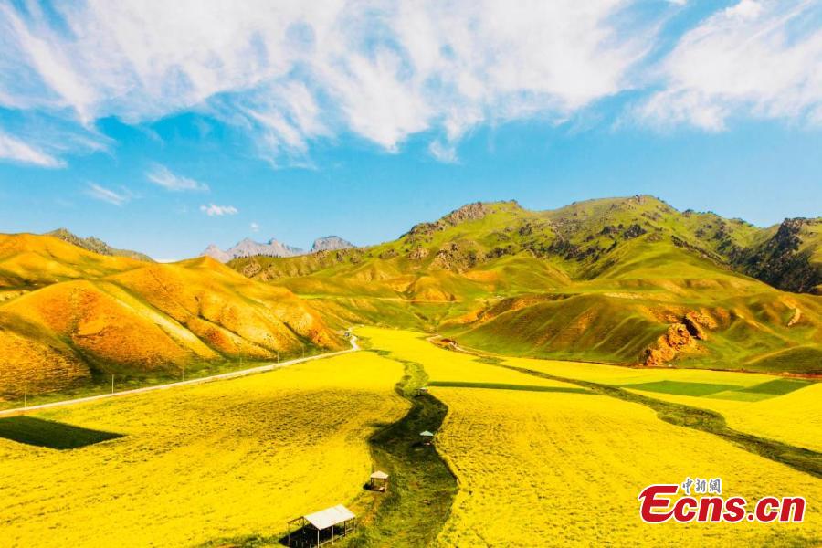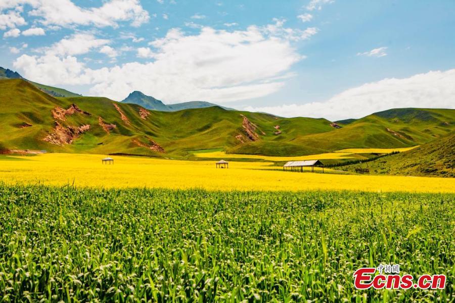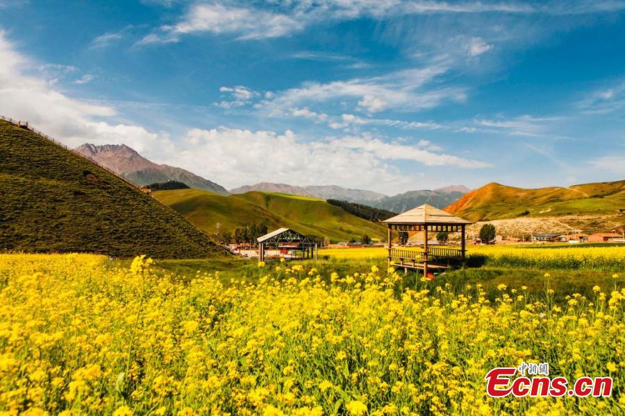 Magnificent summer scenery of Zhuo'er Mountain, which features Danxia landform, in Qilian county of Haibei Tibetan autonomous prefecture, northwest China's Qinghai Province. (Photo: China News Service/Zhao Haimei)