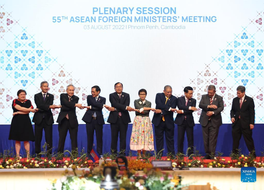 PHNOM PENH, Aug. 3 (Xinhua) -- The 55th ASEAN (the Association of Southeast Asian Nations) Foreign Ministers' Meeting and related meetings kicked off here on Wednesday, with a focus on post-COVID-19 pandemic recovery and key regional and global challenges.