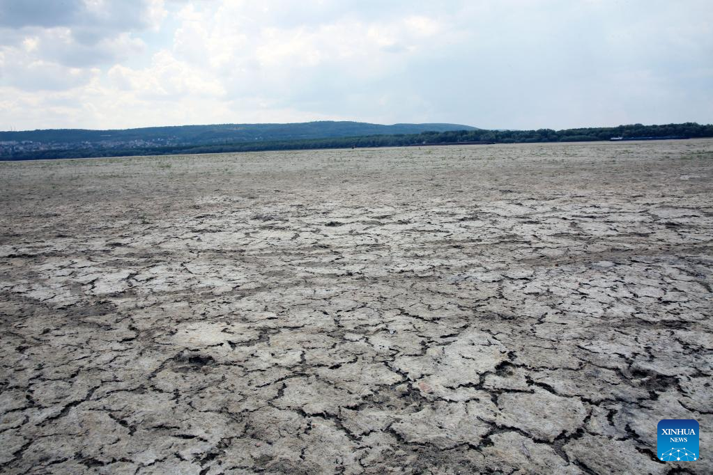 Dry bed of Danube River is seen in Teleorman County, Romania, on Aug. 7, 2022. Romania is facing severe drought this summer. (Photo by Gabriel Petrescu/Xinhua)