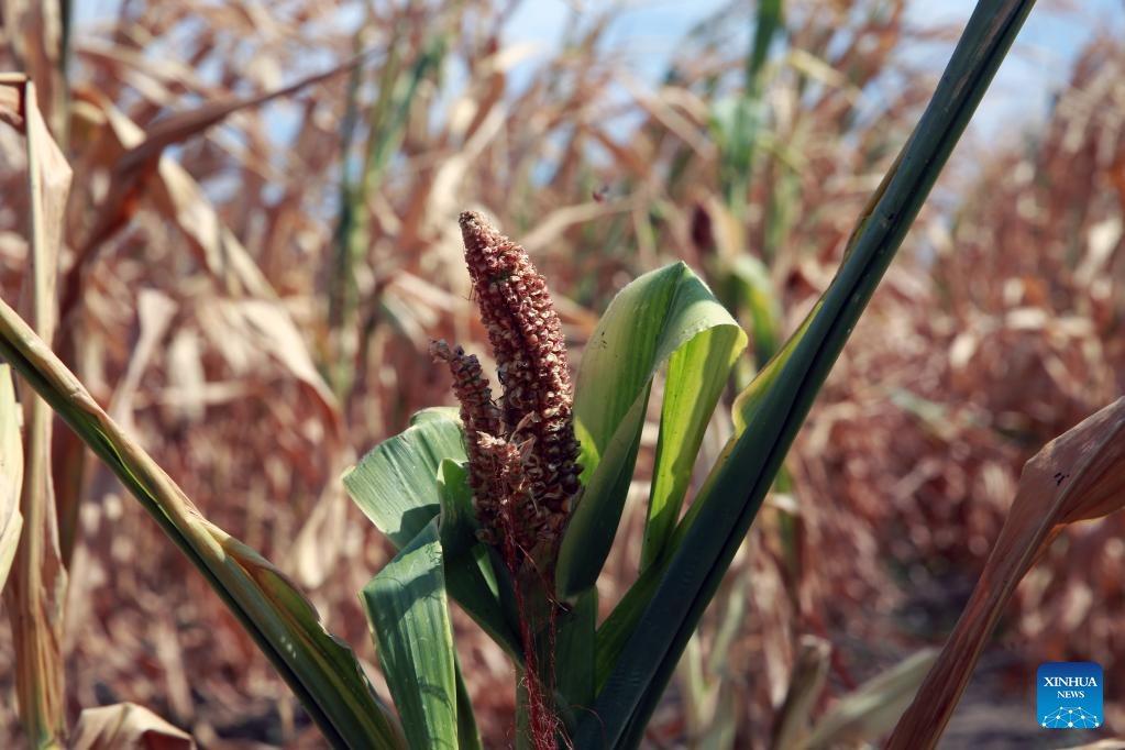 A corn cob is seen undergrown due to drought in Teleorman County, Romania, on Aug. 7, 2022. Romania is facing severe drought this summer. (Photo by Gabriel Petrescu/Xinhua)
