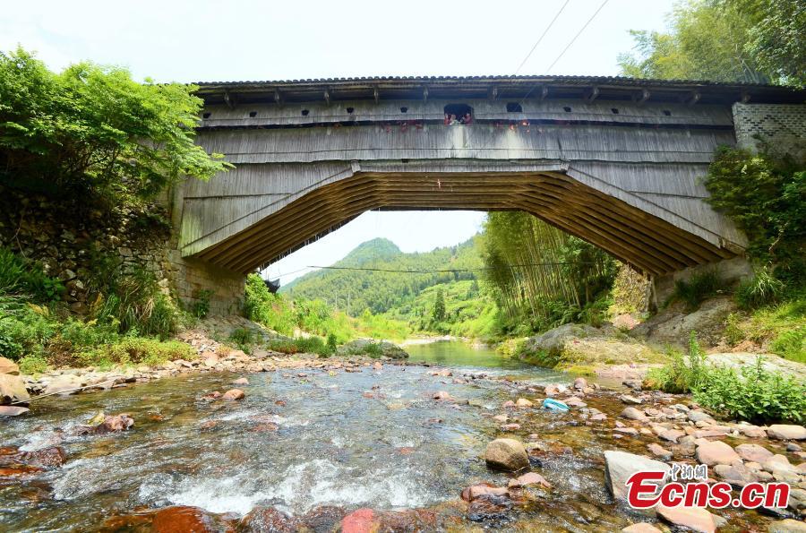 File photo shows the Denglong wooden-roofed arch bridge in Bapu village of Siqiao town, Zhouning county, Ningde, east China's Fujian Province. (Photo: China News Service/Li Hongyuan)