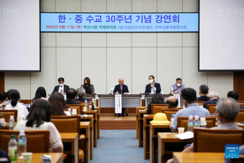 BUSAN, South Korea, Aug. 11 (Xinhua) -- A lecture meeting to mark the 30th anniversary of the establishment of diplomatic relations between South Korea and China was held here on Thursday.