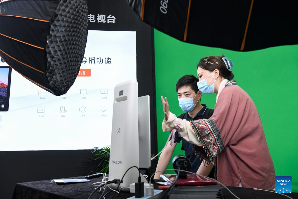 Visitors experience a smart live-streaming device at the 10th China Information Technology Expo in Shenzhen, south China's Guangdong Province, Aug. 16, 2022. (Xinhua/Liang Xu)