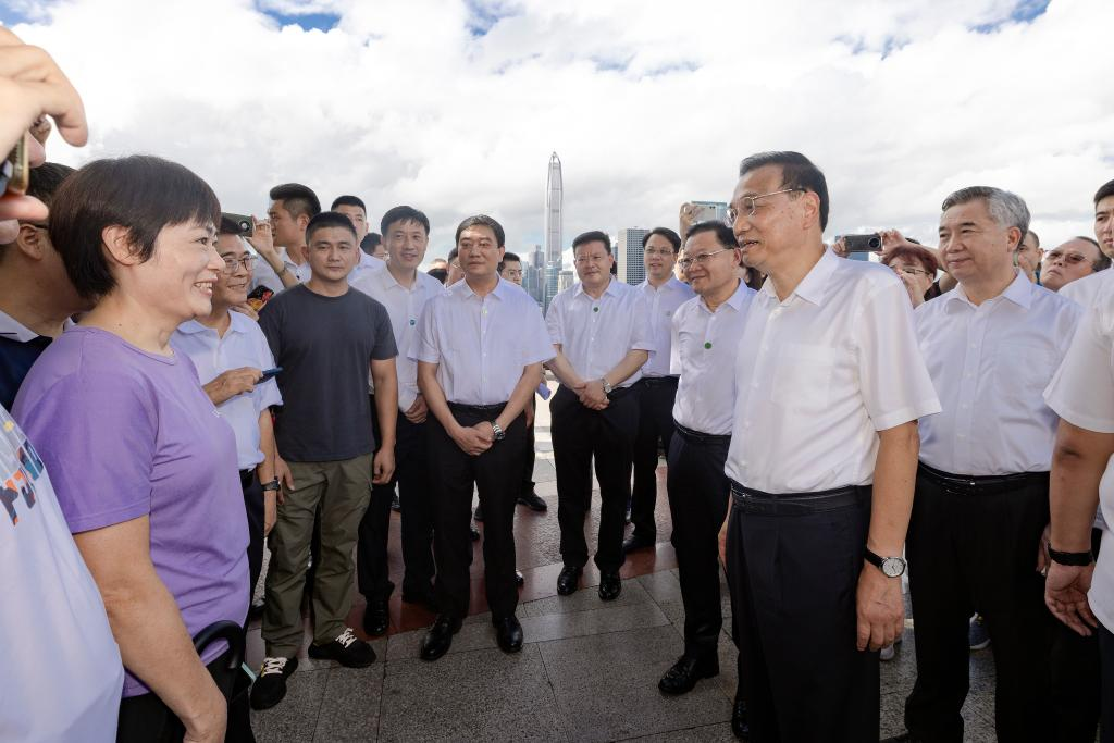 Chinese Premier Li Keqiang, also a member of the Standing Committee of the Political Bureau of the Communist Party of China Central Committee, talks with citizens at Lianhuashan Park in Shenzhen, south China's Guangdong Province, Aug. 17, 2022. Li made an inspection tour in Shenzhen from Tuesday to Wednesday. (Xinhua/Liu Bin)