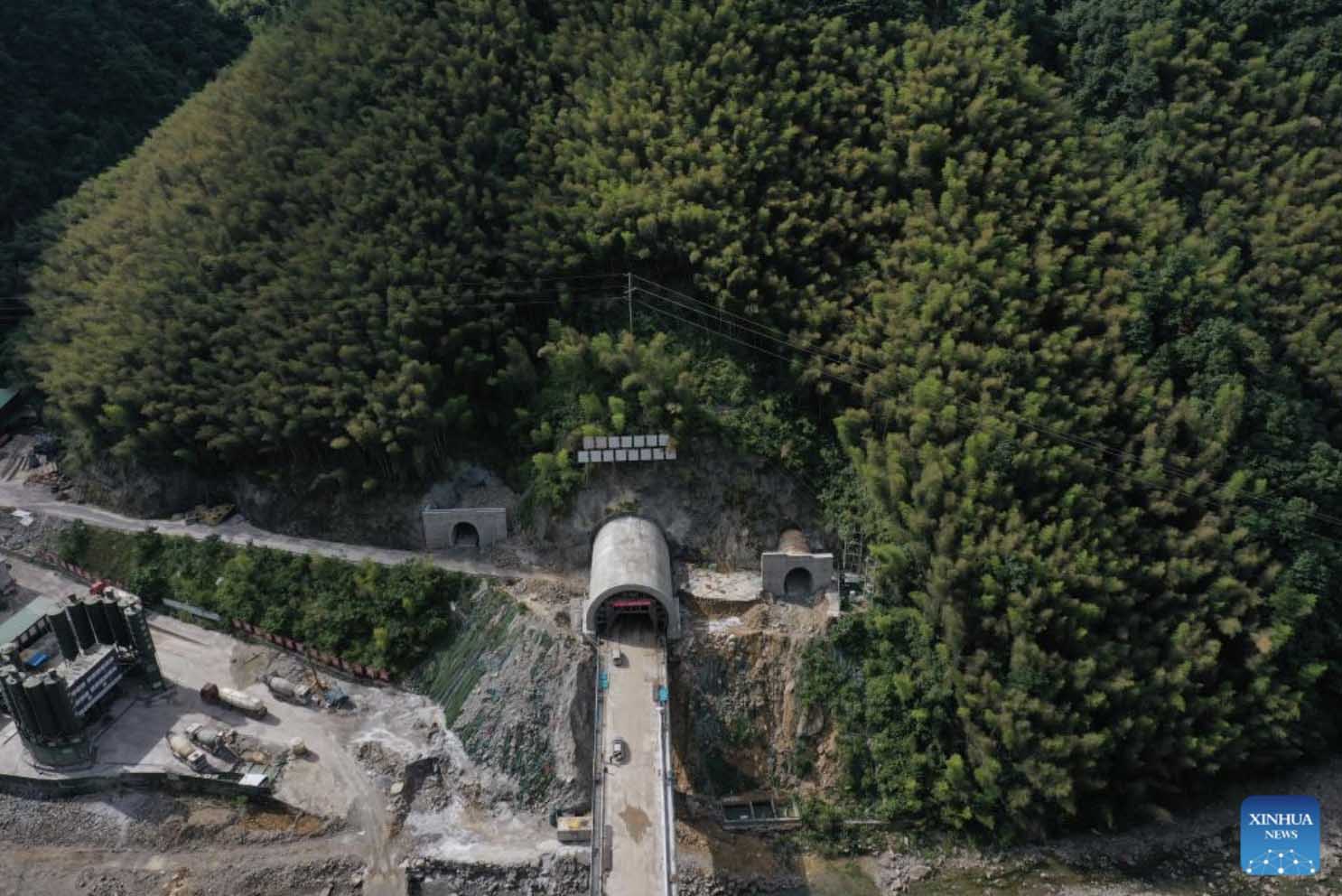 Aerial photo taken on Aug. 19, 2022 shows the Hukou tunnel of the Hangzhou-Wenzhou railway in east China's Zhejiang Province, . The Hukou tunnel of the high-speed railway linking Hangzhou and Wenzhou cities was drilled through on Friday. (Xinhua/Huang Zongzhi)