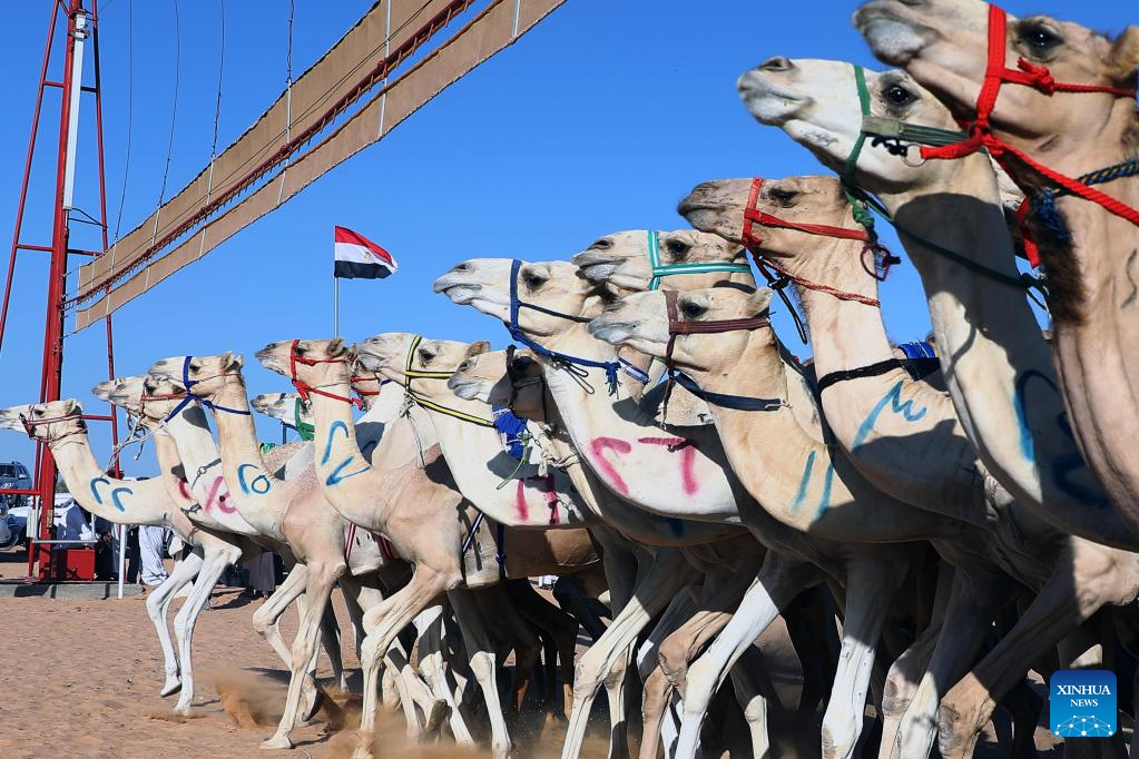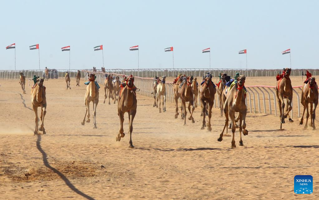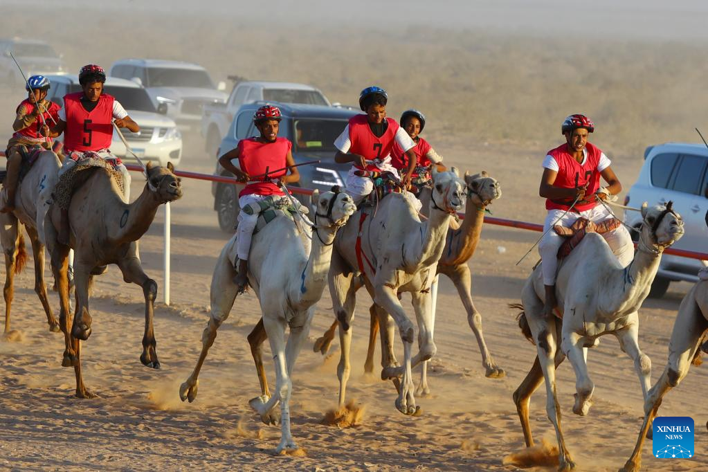 Participants compete during a camel race in El Alamein City, Egypt, Aug. 23, 2022. (Xinhua/Ahmed Gomaa)