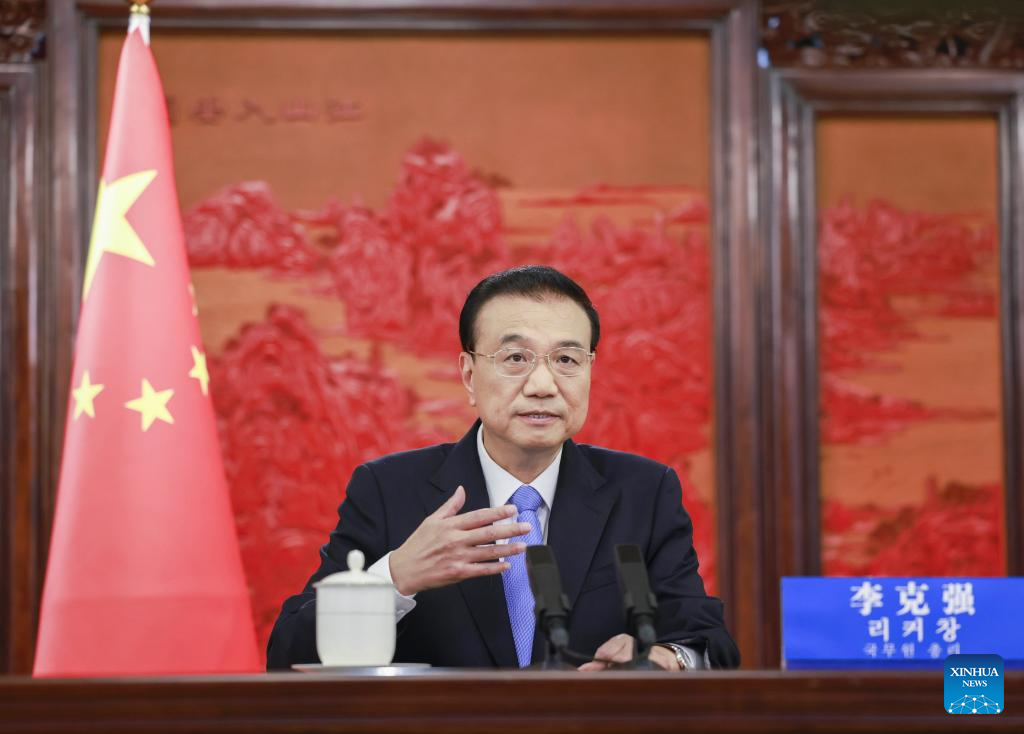 BEIJING, Aug. 25 (Xinhua) -- Chinese Premier Li Keqiang on Wednesday virtually addressed a business cooperation forum celebrating the 30th anniversary of the establishment of diplomatic ties between China and the Republic of Korea (ROK).