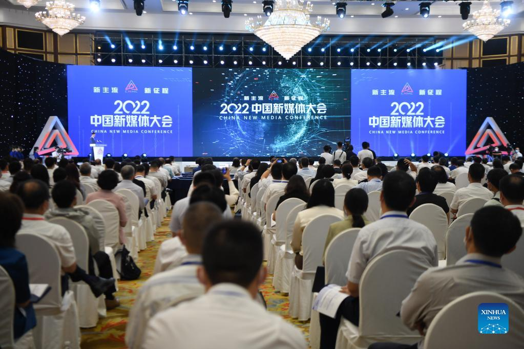People attend the opening ceremony of the 2022 China New Media Conference in Changsha, central China's Hunan Province, Aug. 30, 2022. The 2022 China New Media Conference, organized by the All-China Journalists Association and the publicity department of the Communist Party of China (CPC) Hunan provincial committee, kicked off Tuesday in Changsha. (Xinhua/Xue Yuge)