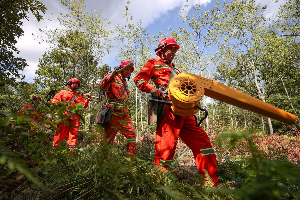 Forest rangers of a state-owned forest farm in Bijie, southwest China's Guizhou province go on a patrol mission for fire prevention, Aug. 24, 2022. (Photo by Chen Xi/People's Daily Online)