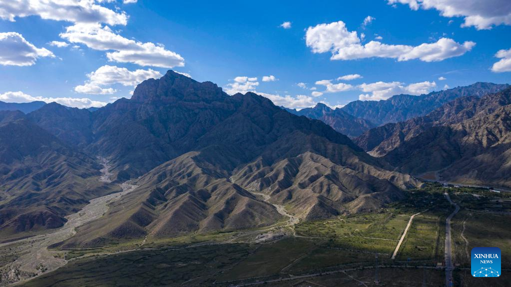 Aerial photo taken on Aug. 30, 2022 shows the scenery of Helan Mountain in Yinchuan, northwest China's Ningxia Hui Autonomous Region. (Xinhua/Yang Zhisen)