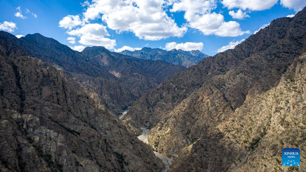 Aerial photo taken on Aug. 30, 2022 shows the scenery of the cliff painting scenic area of Helan Mountain in northwest China's Ningxia Hui Autonomous Region. (Xinhua/Yang Zhisen)