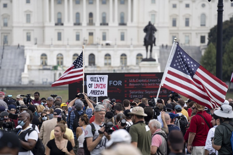 People gather near the Capitol building during a right-wing rally in Washington, D.C., the United States, on Sept. 18, 2021. (Xinhua/Liu Jie)