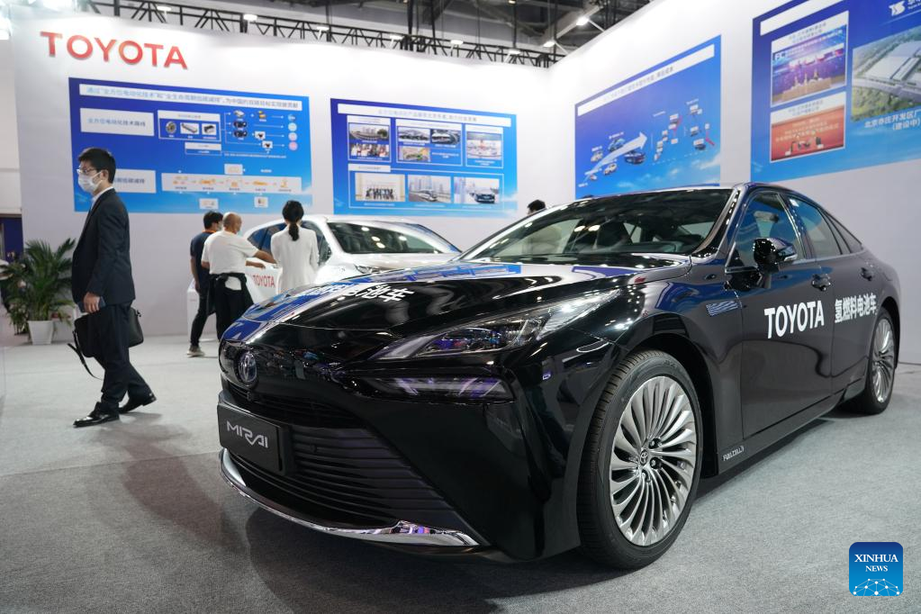 Photo taken on Sept. 1, 2022 shows a hydrogen-powered car displayed at the 2022 China International Fair for Trade in Services (CIFTIS) in Beijing, capital of China. The CIFTIS is held in Beijing from Aug. 31 to Sept. 5. (Xinhua/Ren Chao)