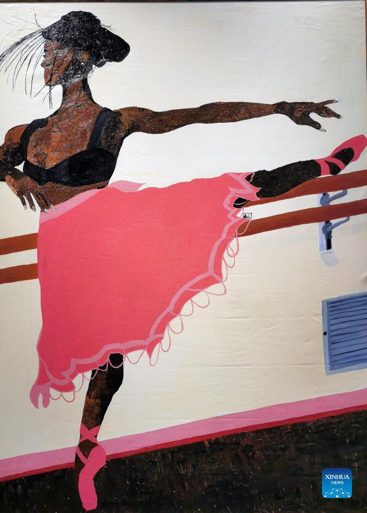 Photo taken on Sept. 1, 2022 shows a painting of a contemporary African art exhibition in Vilnius, capital of Lithuania. More than 30 contemporary African artworks by fifteen artists from six countries are on display. (Photo by Yang Weihua/Xinhua)