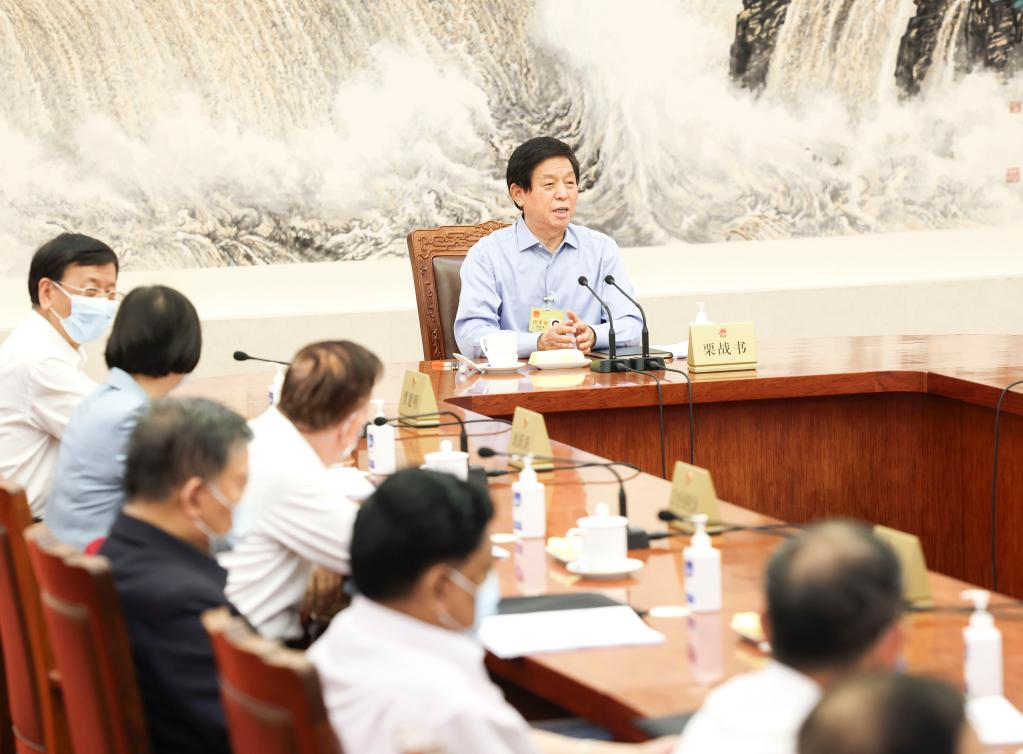 Li Zhanshu, chairman of the National People's Congress (NPC) Standing Committee, presides over the 123rd meeting of the Council of Chairpersons of the 13th NPC Standing Committee at the Great Hall of the People in Beijing, capital of China, Sept. 1, 2022. (Xinhua/Pang Xinglei)