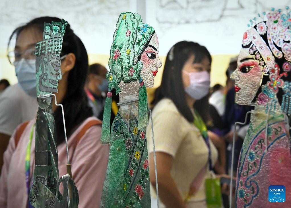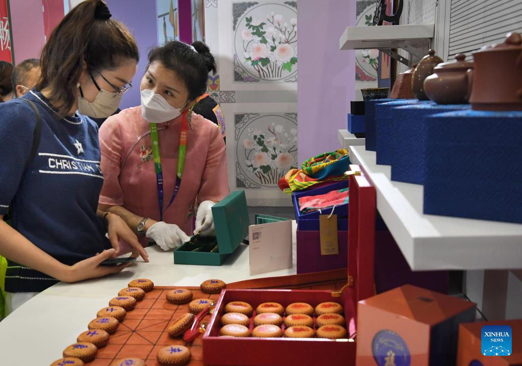 Visitors try out creative products-making at the 9th Chinese Museums and Relevant Products and Technologies Exposition (MPT-Expo) in Zhengzhou, capital of central China's Henan Province, Sept. 1, 2022. The 9th MPT-Expo opened here Thursday, where 437 museums across the country showcased their latest development and achievements in related areas. (Xinhua/Li An)