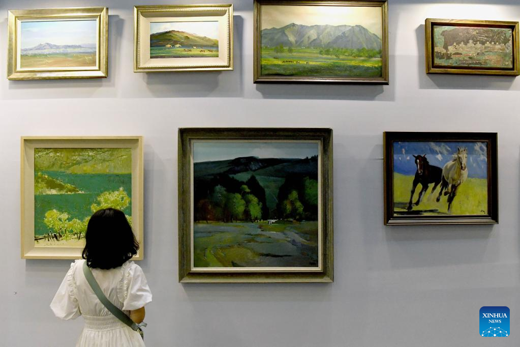 A visitor looks at exhibits displayed at the 9th Chinese Museums and Relevant Products and Technologies Exposition (MPT-Expo) in Zhengzhou, capital of central China's Henan Province, Sept. 1, 2022. The 9th MPT-Expo opened here Thursday, where 437 museums across the country showcased their latest development and achievements in related areas. (Xinhua/Li An)