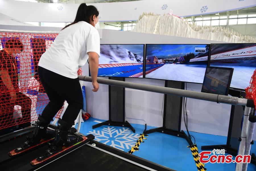 A visitor tries a virtual skiing device at the 2022 China International Fair for Trade in Services (CIFTIS) at the Shougang Park in Beijing. (Photo: China News Service/Tian Yuhao)