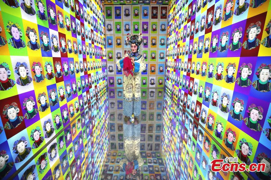 A Peking opera artist poses for photos during a cultural exhibition, which is also part of the 2022 China International Fair for Trade in Services (CIFTIS), at the Shougang Park in Beijing, Sept. 1, 2022. (Photo: China News Service/Zhao Jun)