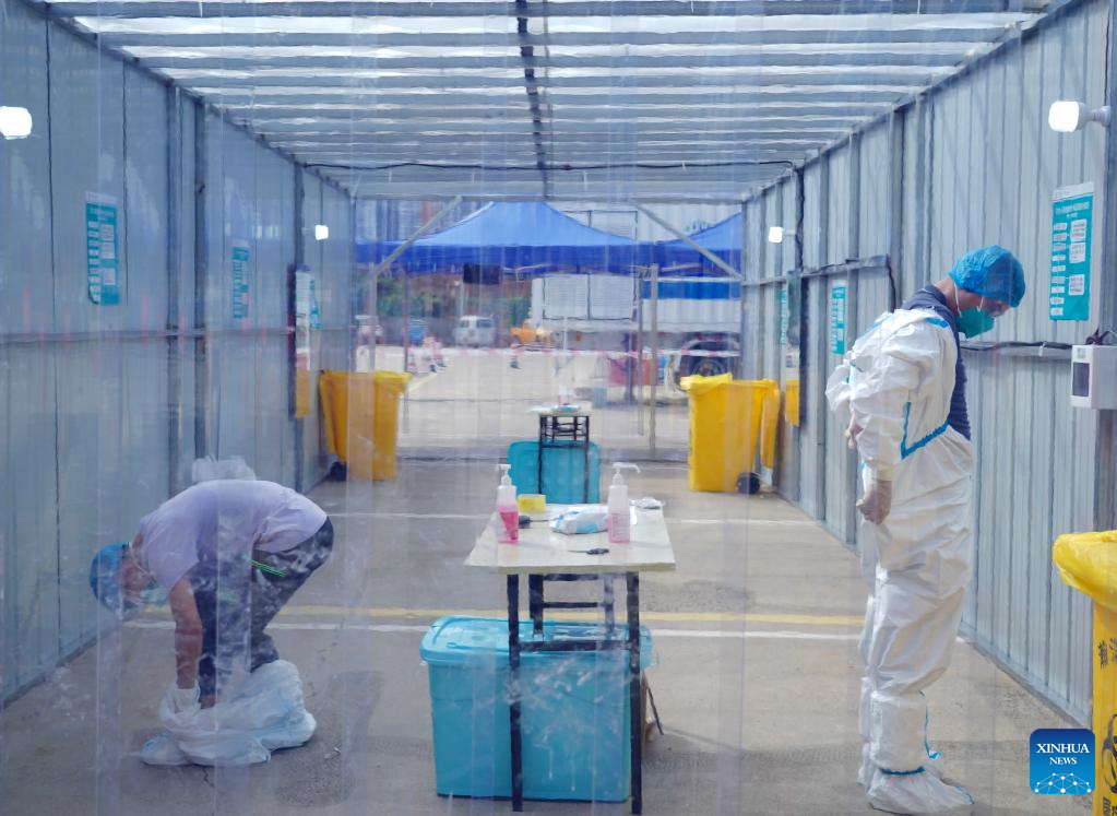 Medical workers of an air-inflated testing lab prepare to receive nucleic acid samples in Chengdu, southwest China's Sichuan Province, Sept. 5, 2022.